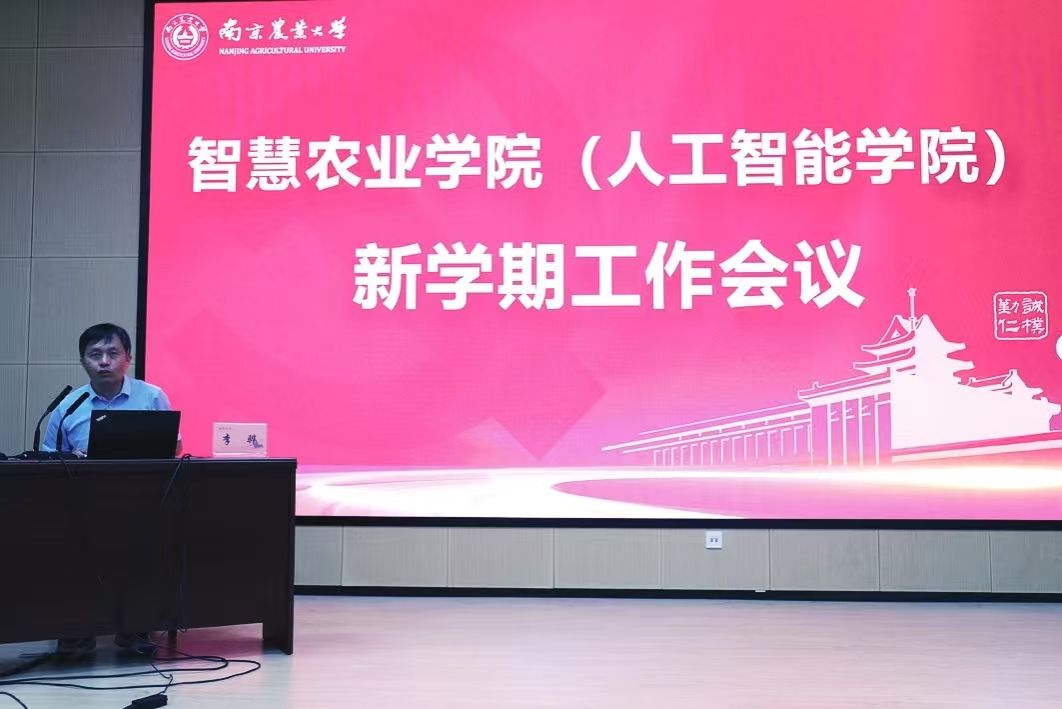 学院常务副院长田永超从现状与形势、推进举措及工作回顾与安排三个方面对学院工作进行了具体部署。他指出,人工智能时代,智慧农业大有可为。学院获批建设江苏省首批省级人工智能学院,具有较好的发展前景。田永超详细分析了学院学科专业、师资队伍和科教平台现状,提出要以建设优势特色鲜明、人才自主培养能力强、关键技术攻关水平高,国内一流、国际知名的智慧农业领域教育科研型标杆学院为目标,通过交叉型一级博士点培育建设、组建“AI+农业”创新团队、打造国际智慧农业论坛品牌、深化产学研协同创新机制等举措推动学院师资队伍建设、人才培养、科学研究、社会合作、国际交流与合作等工作,促进相关领域关键技术和产品装备突破,赋能区域经济社会发展。田永超还对学院治理优化、文化建设等暑期工作进行了总结,并对“十五五”规划、计算机科学与技术人才培养和学科建设研讨、“智汇大讲堂”开讲、科研项目申报、AI赋能教育教学改革等新学期重点工作进行部署。