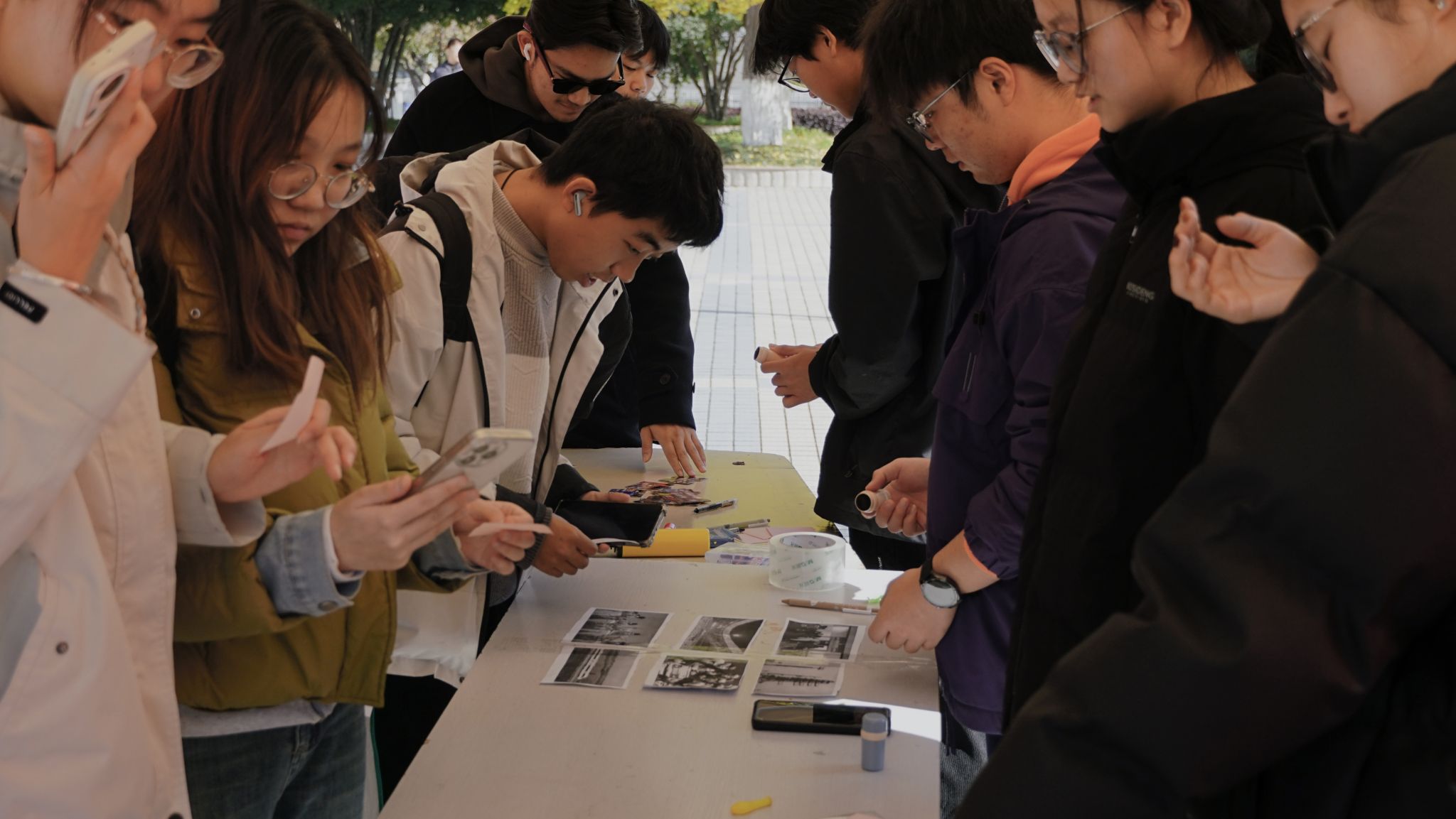 “青春与国同成长”环节则让同学们的情感与认知进一步落地。展架两侧形成鲜明而温暖的对比:一边是“航母入列”“天眼落成”的大国发展印记,彰显着国家实力的铿锵步伐;一边是“粮票流通”“自行车代步”的民生旧影,承载着一代人的生活记忆。同学们俯身认真比对照片细节,在“大国叙事”与“生活烟火”的碰撞中真切感知到国家发展与个体幸福的深度关联。“原来祖国的每一步跨越,都藏在我们生活的变迁里!”参与者们有感而发。配对完成,第二枚专属印章落下的印记既是对参与热情的肯定,更凝结着对“国家好,人民才幸福”的深刻体悟。