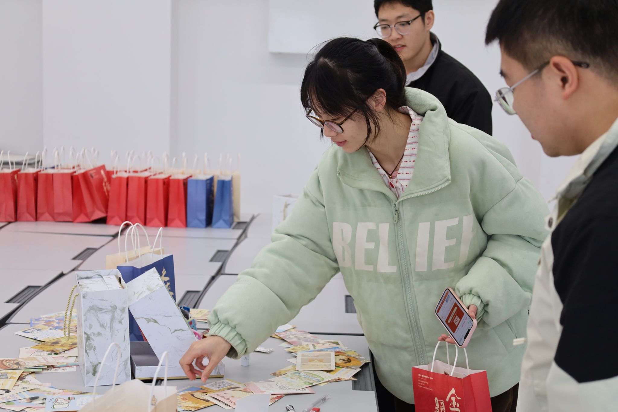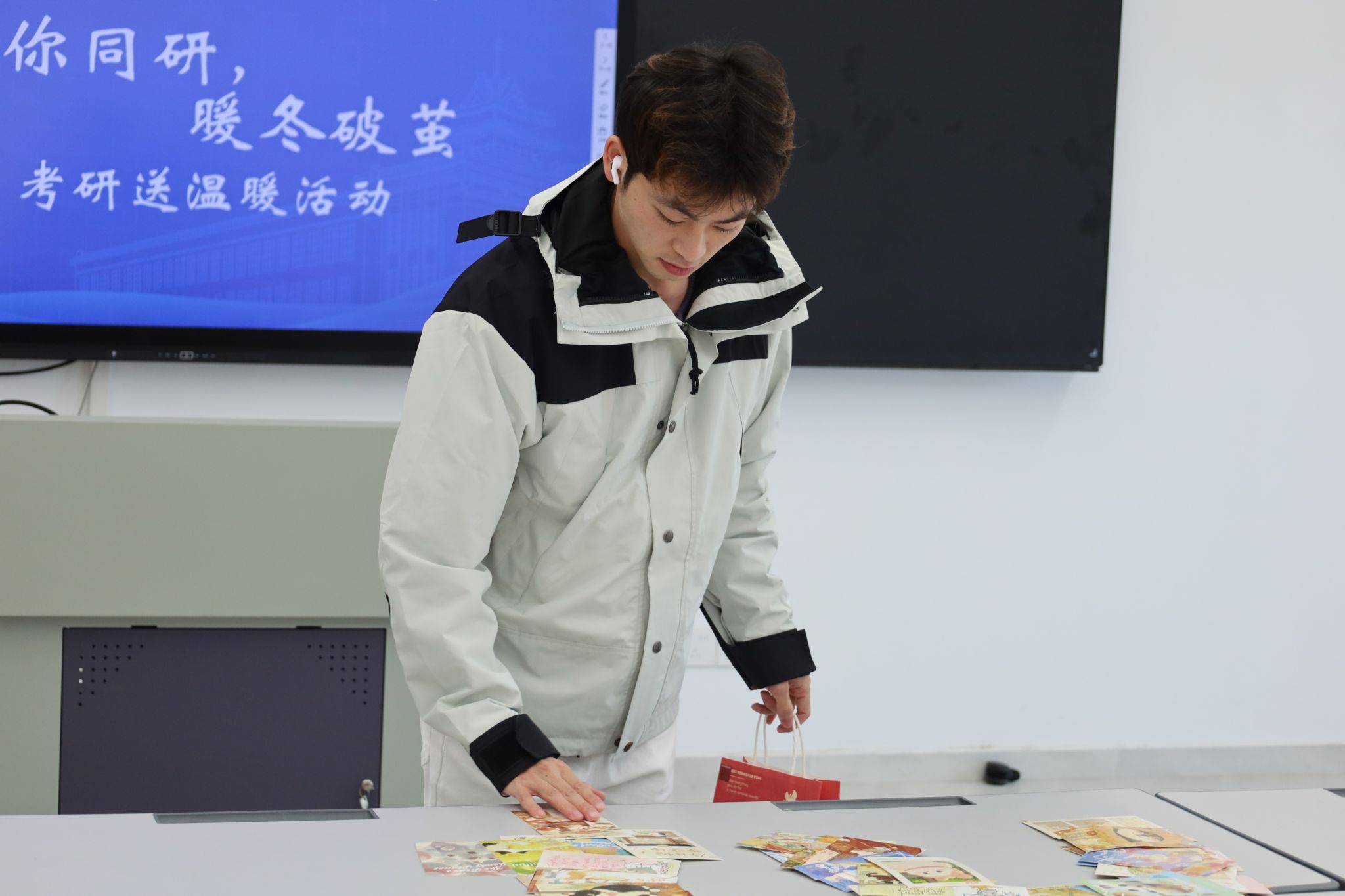未雨绸缪,情系研途。活动筹备阶段,学院便深入考研学生群体,精准调研他们的实际需求。线上抽奖环节,为学子们送上实用的备考物资;而一封封由同学们亲笔书写的祝福信,则成为了最动人的礼物。“一战成硕”的坚定信念、“笔锋所至,心之所向”的美好期许、“愿你披荆斩棘,终抵理想彼岸”的真诚祝愿……每一笔都饱含着对学长学姐的深情厚谊,每一字都传递着并肩奋斗的温暖力量。