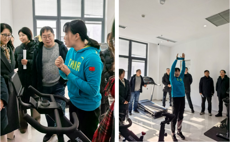 随后,备受师生喜爱的体育部“飞人”孙雅薇老师带来了一场生动实用的科学健身指导课。孙老师详细讲解了驿站内跑步机、动感单车的安全使用方法和科学训练模式,大家纷纷主动尝试体验。孙老师利用弹力绳等便携器材,针对师生因长期伏案工作学习导致的肩颈酸痛等问题,进行现场教学,演示了多个简单有效的肩颈放松和力量强化动作。在场的师生们跟随孙老师的指导一起互动练习,现场气氛活跃,笑语不断。