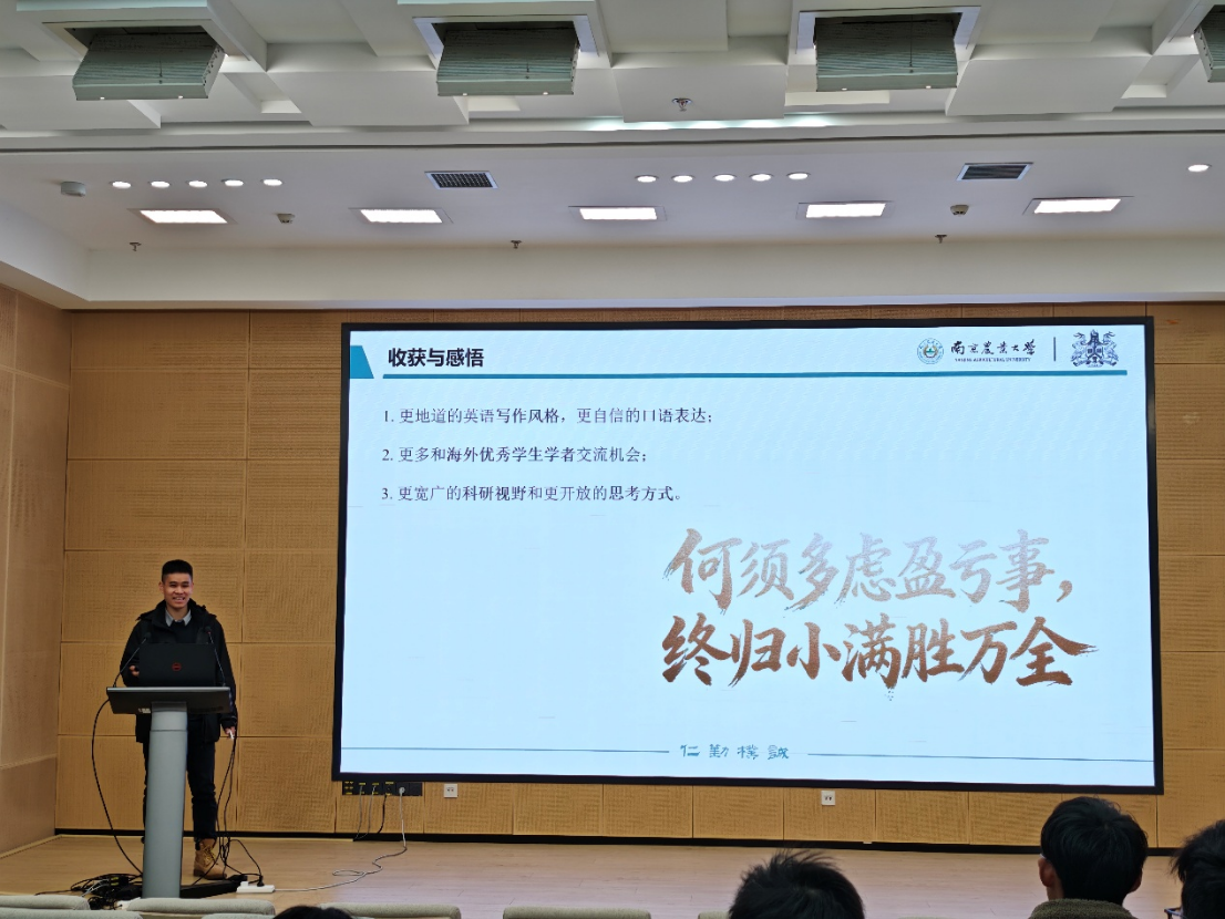 孙元昊博士从科研合作角度出发,分享他与林肯大学外籍导师的科研互动方式,展现了国外学术环境下师生交流的特点。此外,他分享了在英国的自驾旅行经历,生动视频让与会者感受到科研之余丰富多彩的生活体验。