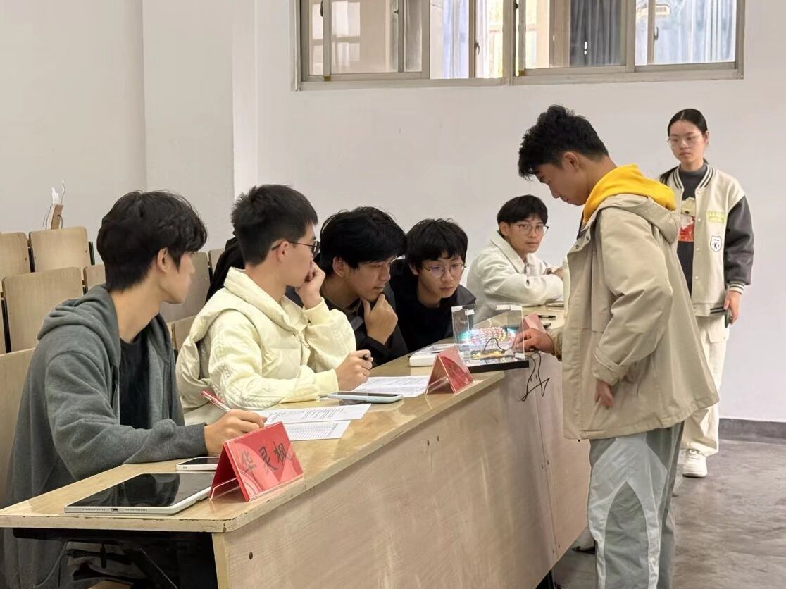 比赛现场,各参赛小组通过PPT详细阐述设计思路、技术路线与团队协作过程,并现场演示最终作品。评委团从技术实现、焊接工艺、创新性及现场表现等多维度进行综合评判,并给予专业指导。随后进行元器件知识问答环节,选手们沉着应答,展现出扎实的专业功底,现场气氛热烈。