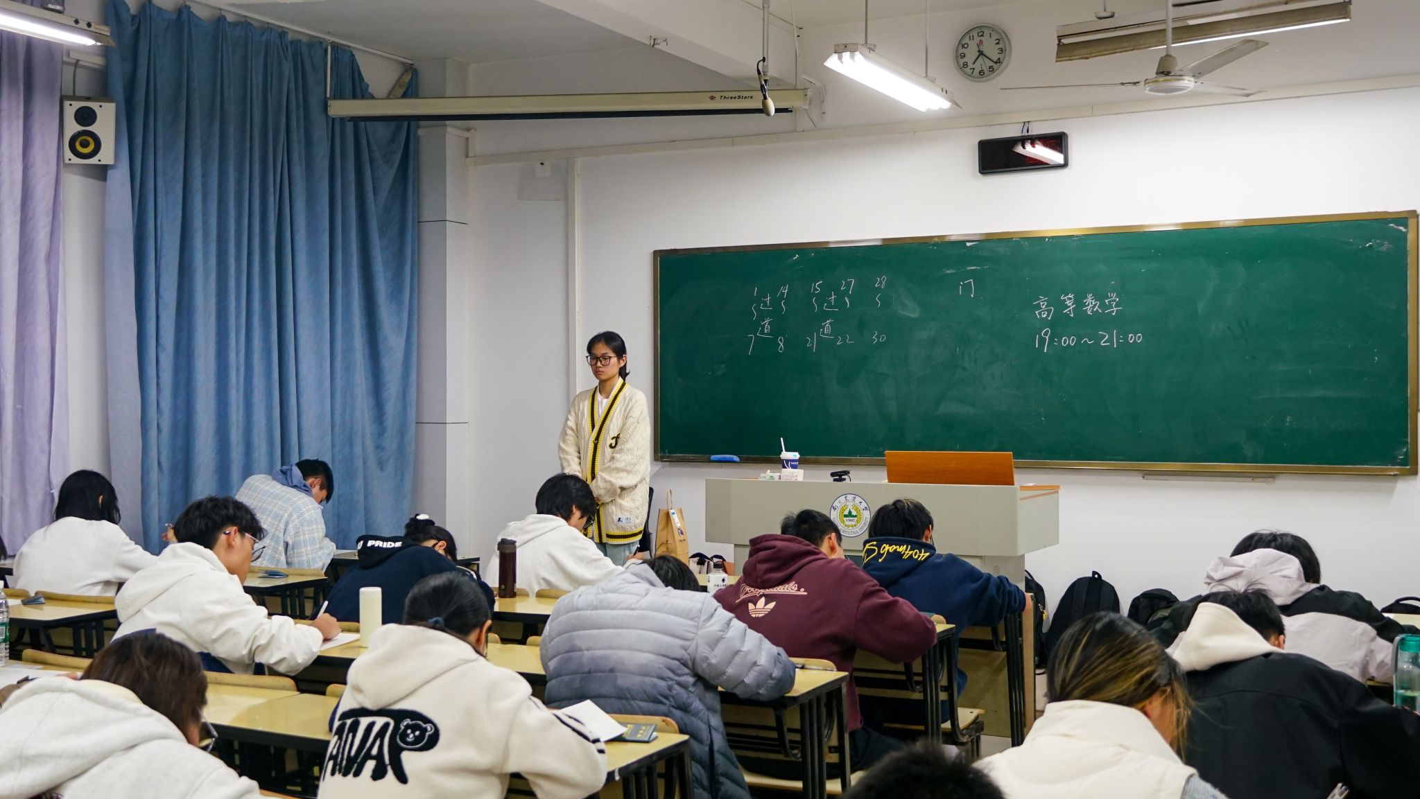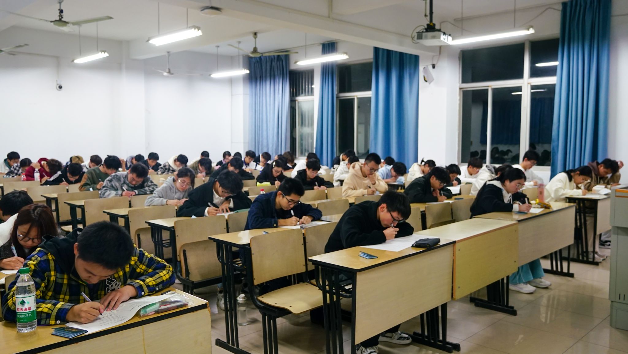 考前,院学生会对接命题教师完成试卷印制与保密管理,同步落实监考安排及评卷计划,提供坚实后勤支撑。考试分三场进行:11月15日19:00-21:00高等数学考试,16日18:30-19:30学生手册考试、19:50-21:20C语言考试。期间,考生态度认真、纪律严明,展现扎实学识与良好学风;监考人员履职尽责,保障考试规范公正。考后工作人员有序组织离场及考场整理。