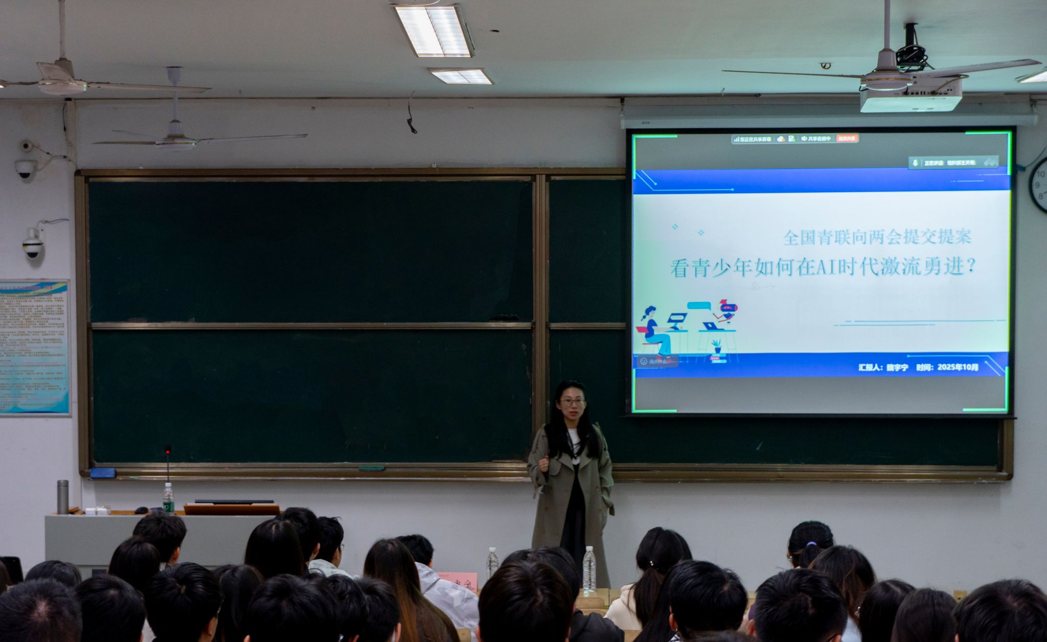 魏宇宁在团课中从五个方面解析提案内容。1.智能思政引领。建议AI融入思政教育,如浙大“AI德法老师”、北理工虚拟长征课增强代入感;构建AI风险评估模型防范意识形态风险。2.AI素养普惠。呼吁AI课程纳入教育体系,中国电信“智传网”技术助力偏远地区虚拟课堂覆盖,实现技能人人可及。3.实践创新激发。鼓励参与“AI+”赛事,第三届世界科学智能大赛设中学组赛道,激发青少年创造力。