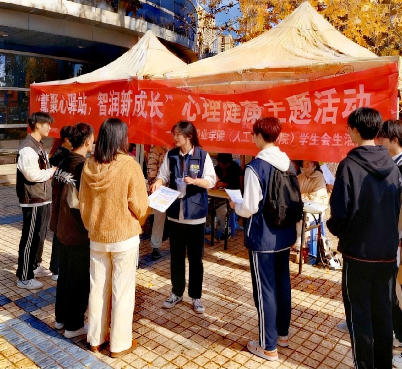 为帮助同学们舒缓情绪、释放压力,11月26日,智慧农业学院(人工智能学院)心站(学生会生活部)在润泽园广场举办“慧聚心驿站,智润新成长”心理健康主题活动。本次活动以“慧聚心驿站,智润新成长”为核心,设置了三大创意板块,让参与者参与其中体会心灵力量。