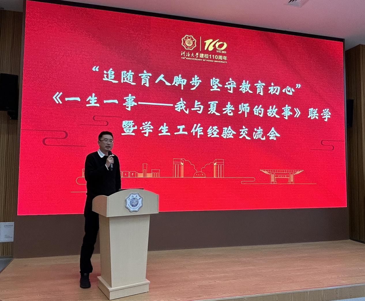 近日,《一生一事——我与夏老师的故事》联学暨学生工作经验交流会在河海大学夏金仙学生服务中心举行。智慧农业学院(人工智能学院)党委副书记吕一雷、本科生辅导员李洪受邀参与,与来自南京9所高校的学工同仁共话育人使命,共享工作经验。