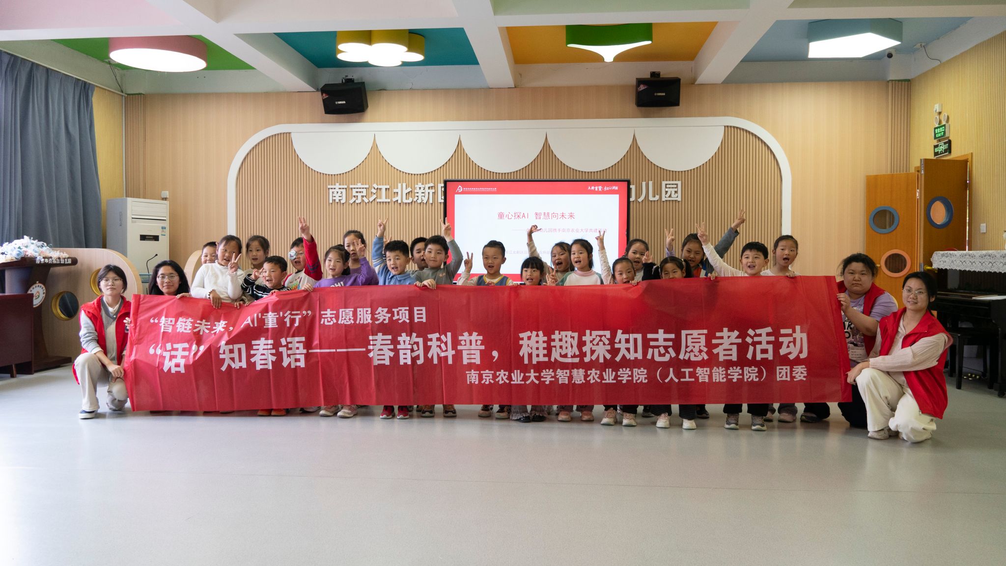 2026年4月10日,智慧农业学院(人工智能学院)团委品牌志愿服务项目“智链未来,AI‘童’行”走进点将台幼儿园,开展“春韵科普,稚趣探知”主题科普活动。学院15名青年志愿者化身“科普小老师”,为幼儿园3个班级共80余名幼儿带来一场融合春日自然观察与人工智能启蒙的趣味科技体验,在寓教于乐的互动中点亮幼儿科学探索的好奇心,充分展现了新时代青年学子的志愿风采与责任担当。