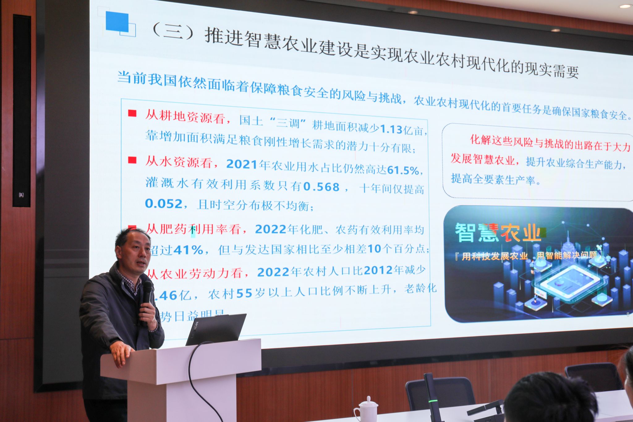 同时,他也坦言当前智慧农业仍面临认识不到位、数据共享机制不畅、关键核心技术滞后、成熟模式缺乏、农民参与度不高等挑战,指出我国智慧农业整体水平与发达国家相比仍有10—20年的差距。针对这些问题,他提出五项重点举措:突破农业传感器、专用芯片、核心算法与智能农机等关键核心技术;强化典型示范引领,建设智慧农场、牧场、渔场,推广可复制的模式;构建农业全产业链数据资源体系;加大政策支持力度,引导社会资本投入;加强人才队伍建设,提升基层干部、新型经营主体和农民的数字素养。